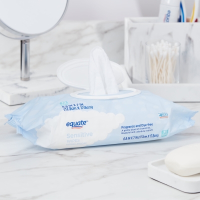 Equate Sensitive Fragrance and Dye-Free Wipes, Hypoallergenic, Soothing Botanical Extracts, 6.8 x 7 in, 72 Count